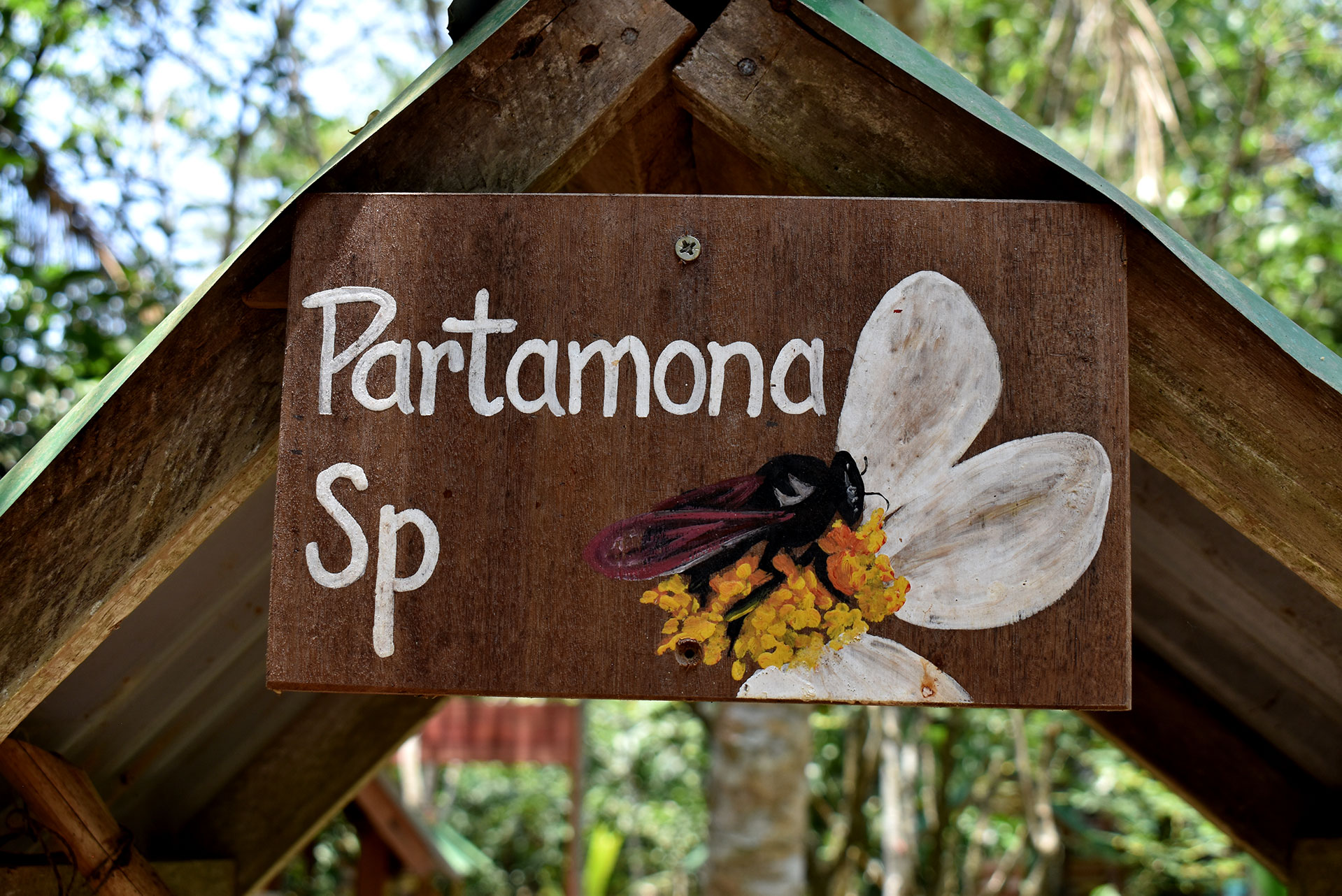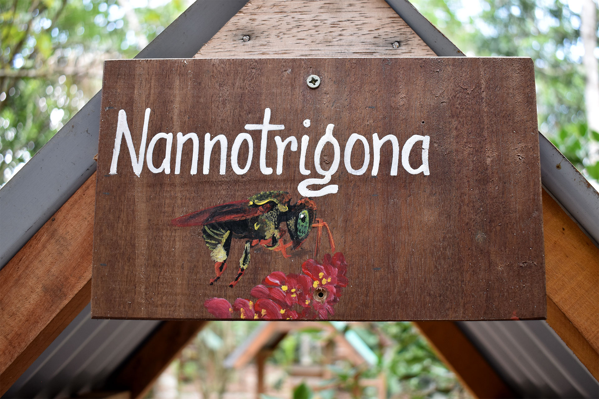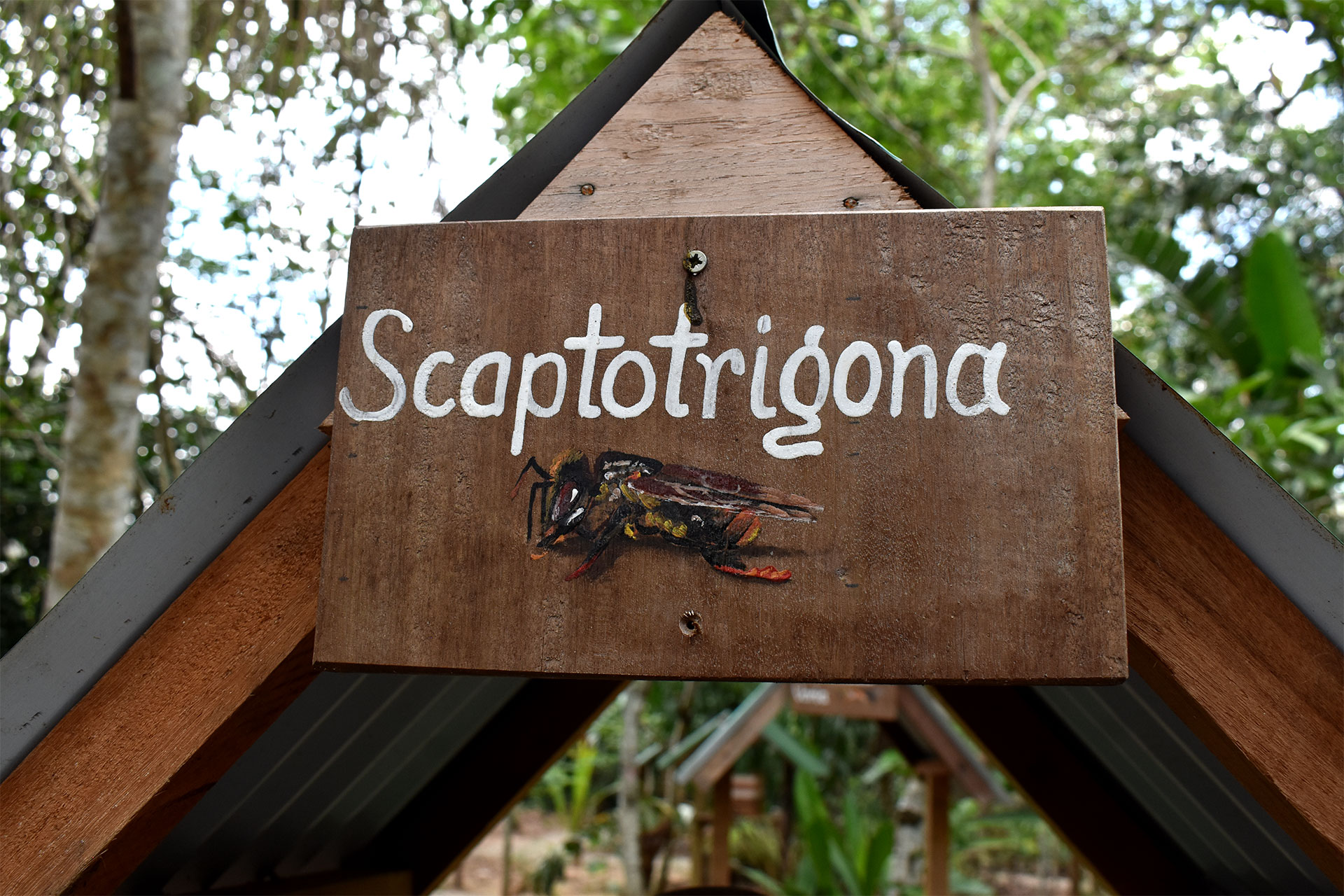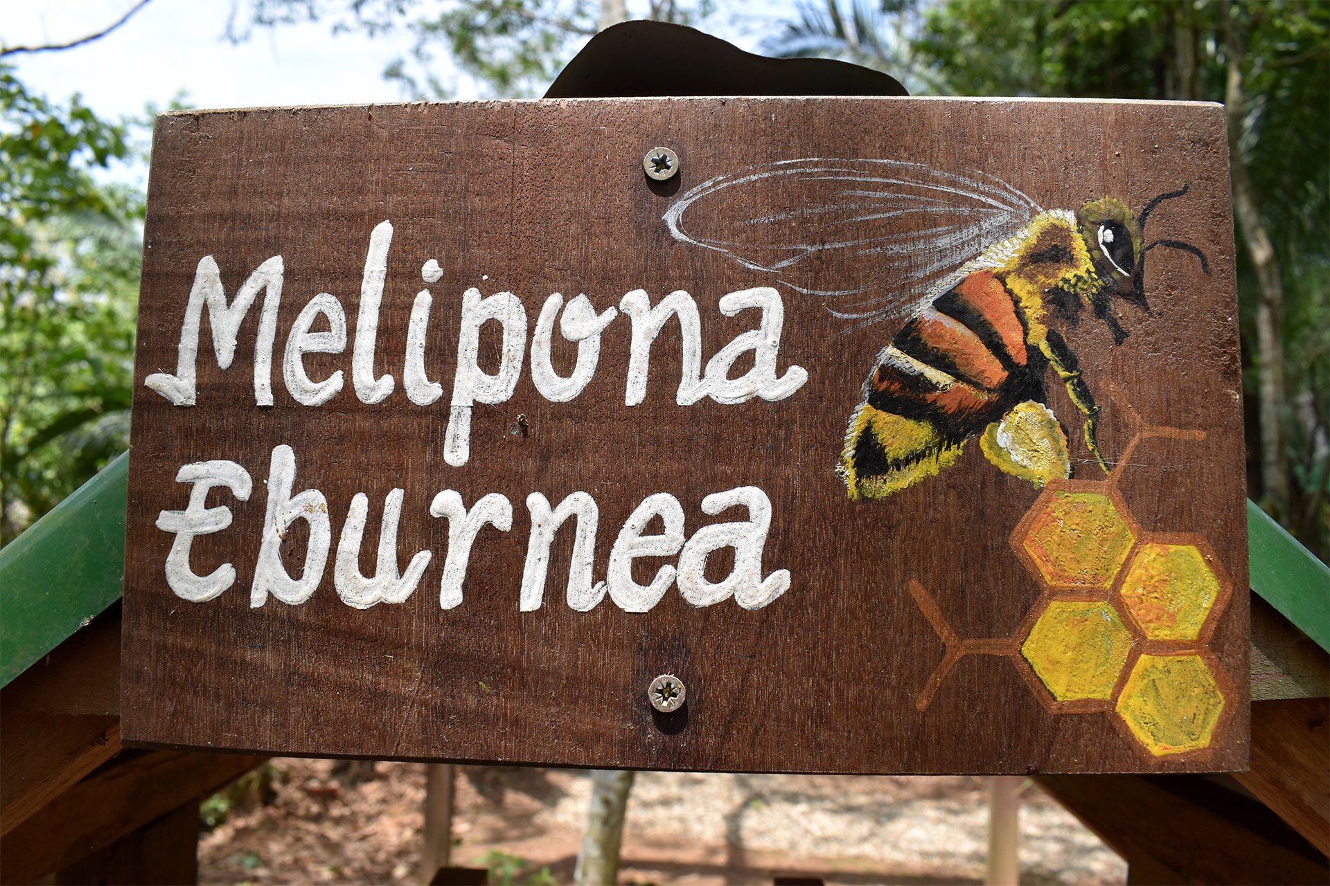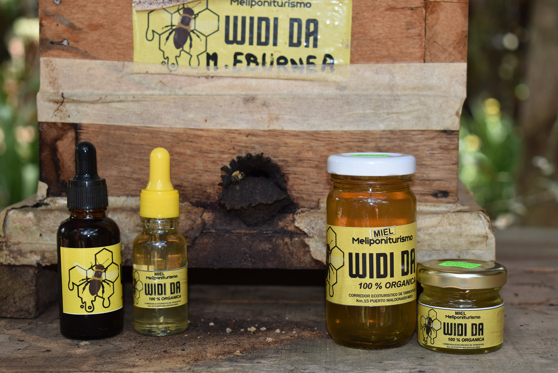 En Madre de Dios le llaman “señorita” “abeja mansa” “ronsapilla”, por su parecido a la abeja Apis melífera muchos la confunden, es una abeja nativa muy fuerte y la más común en este hábitat.