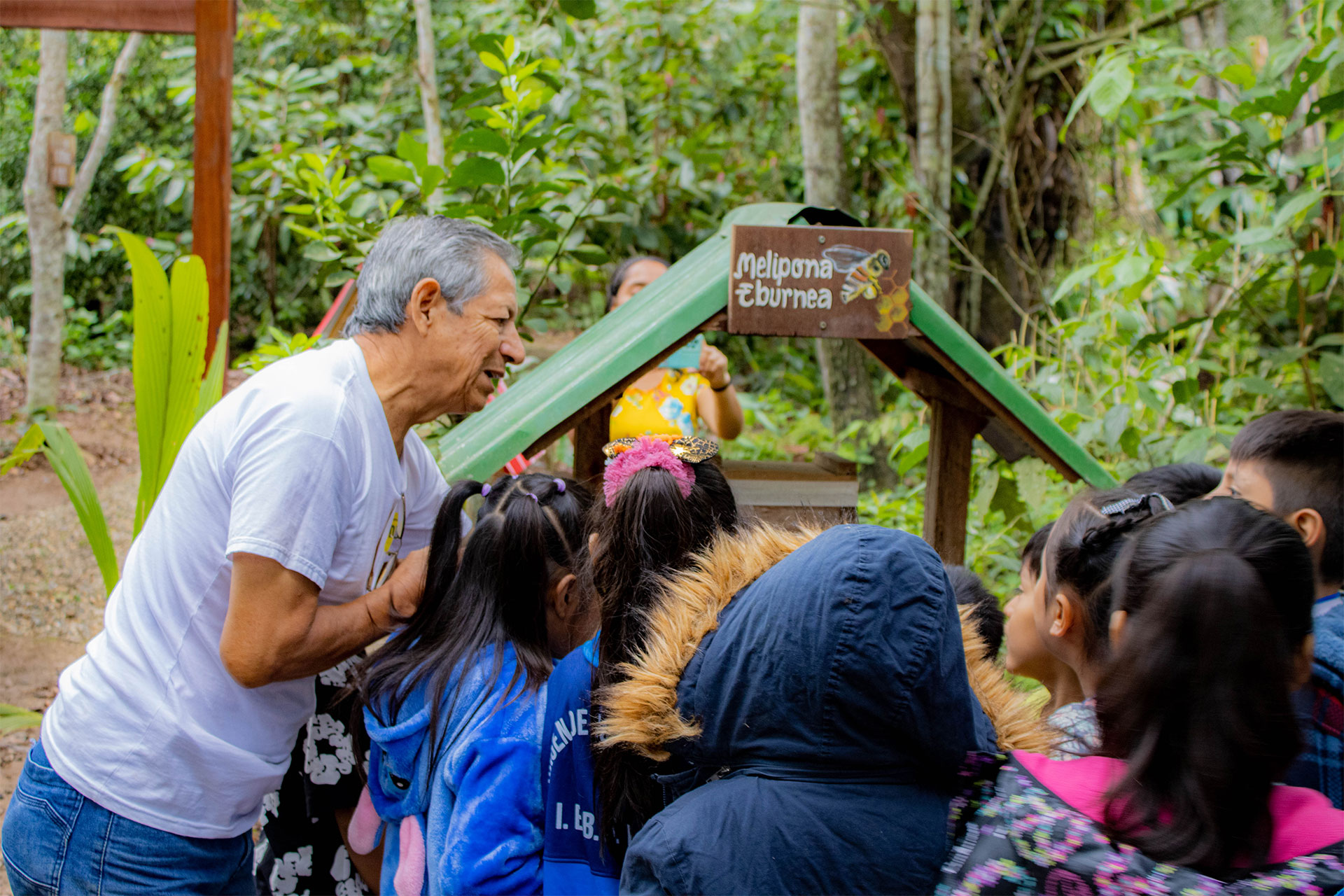- Breve charla de concientización y sensibilización de la crianza y manejo responsable de esta actividad tomando en consideración el trabajo sostenible, las buenas prácticas de conservación de nuestros bosques, la educación ambiental, el estudio e investigación de nuestras abejas nativas sin aguijón.